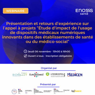 Webinaire Enosis : Présentation et retours d’expérience sur l’appel à projets “Étude d’impact de l’usage de dispositifs médicaux numériques innovants dans des établissements de santé ou du médico-social”