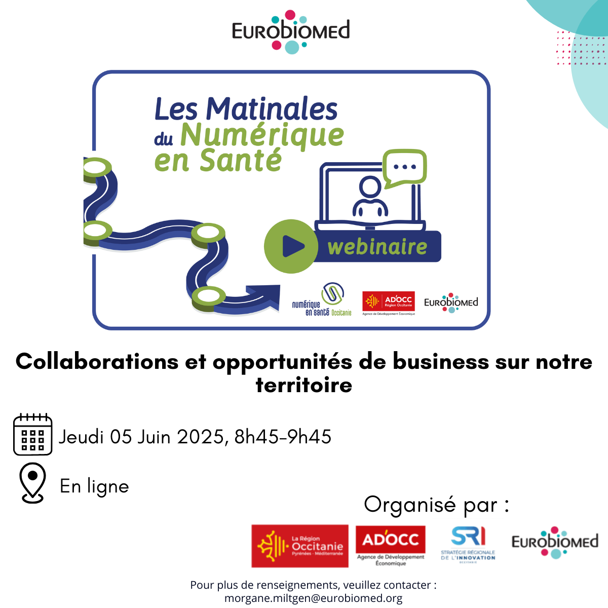 Inscrivez-vous à cette Matinale du Numérique en Santé, 18 Décembre organisée par l'Agence AD'OCC et Eurobiomed.